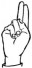 На ћирилици написано МОМИРА ШАБАНОВИЋ састоји се из 15 слова [?]. Исписано ћириличном једноручном азбуком за глувонеме: